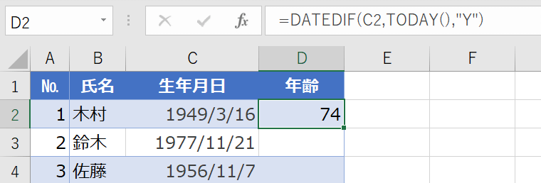 ロータス1-2-3 の古いブックをサポートするために用意されました。そのため、Microsoft公式サポートの関数ではないですが、年齢を計算する数式で利用すると便利です。