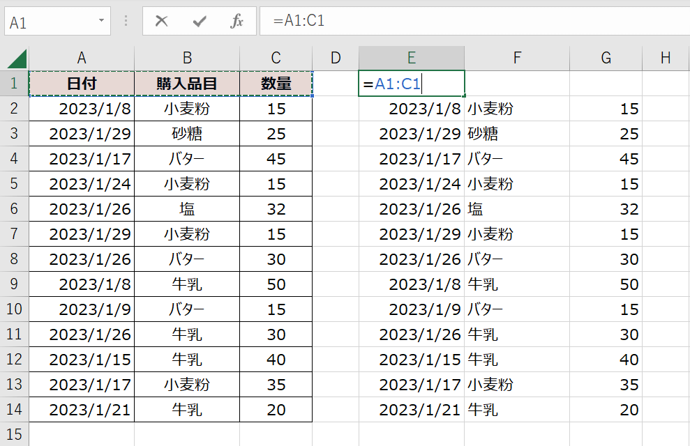 スピルする範囲は、縦(列)と横(行)の両方で指定できます。