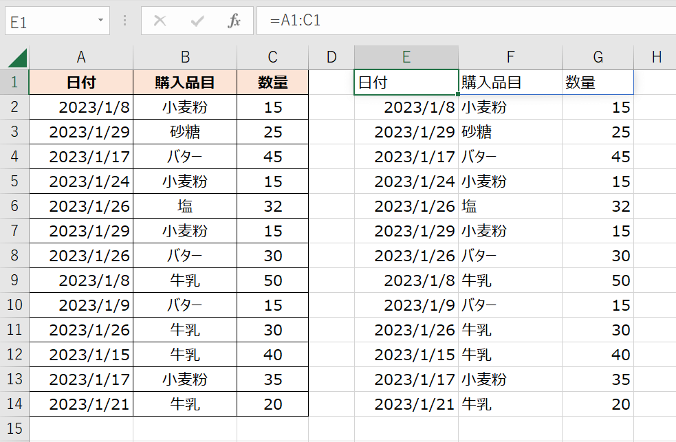 前述の通り、テーブル内でスピル機能は使えませんが、それぞれを連動させると非常に便利です。