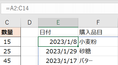 画像のように、「日付」範囲(A2:A14)を指定するとどうなるでしょうか。