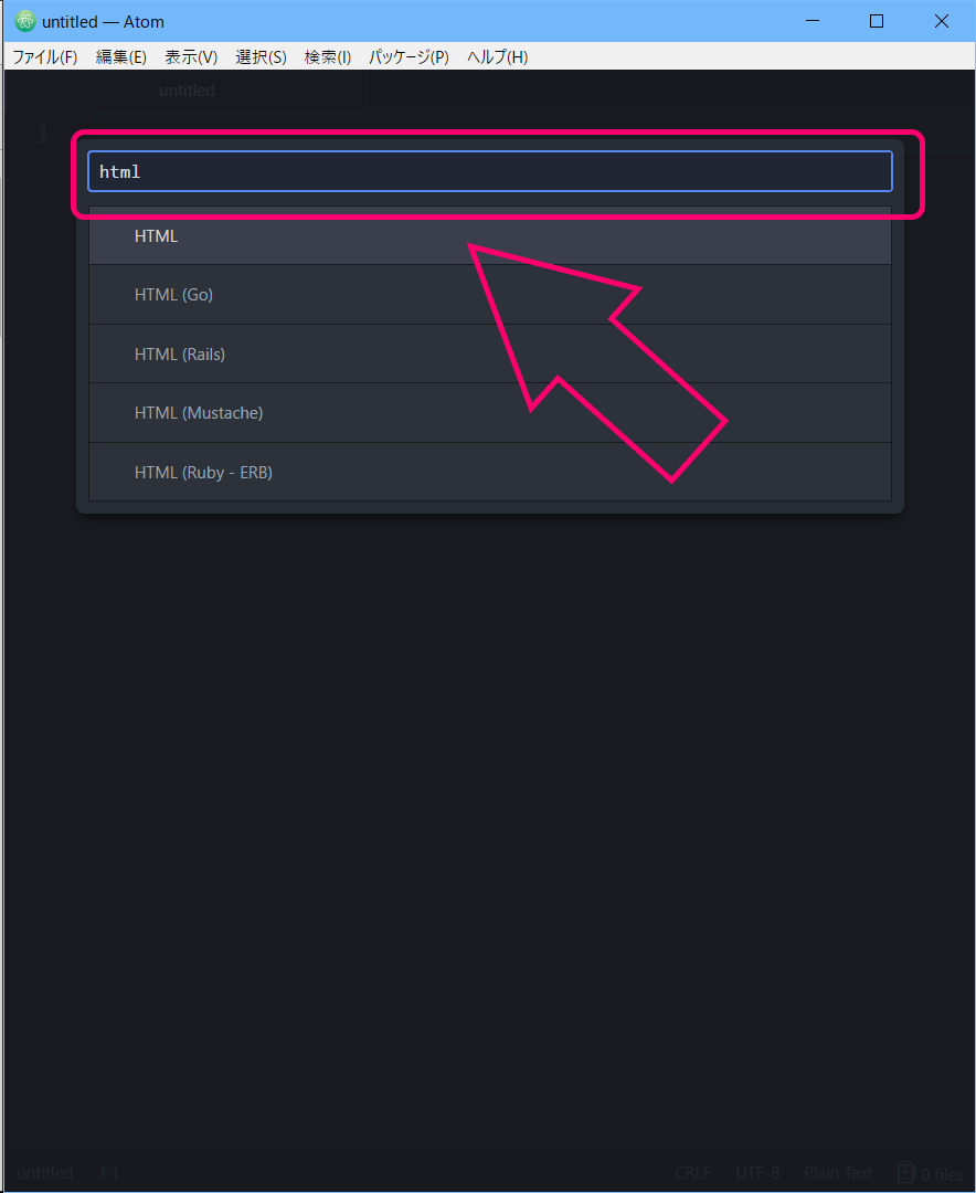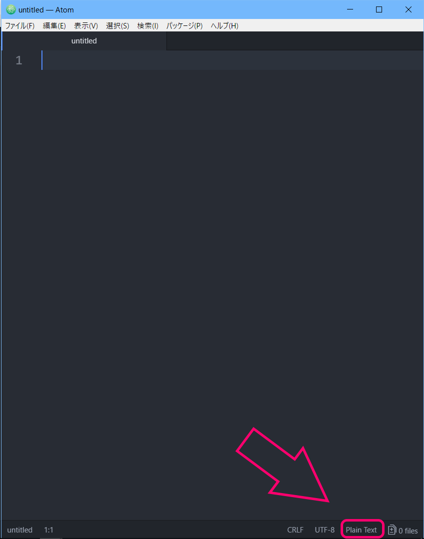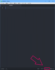 1.Atom(テキストエディタ)を開き 右下の Plain Text を選択