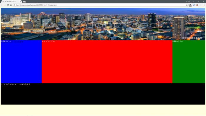 先回までで作成した「3カラム」レイアウトのヘッダー部分の背景を画像にしてみましょう。