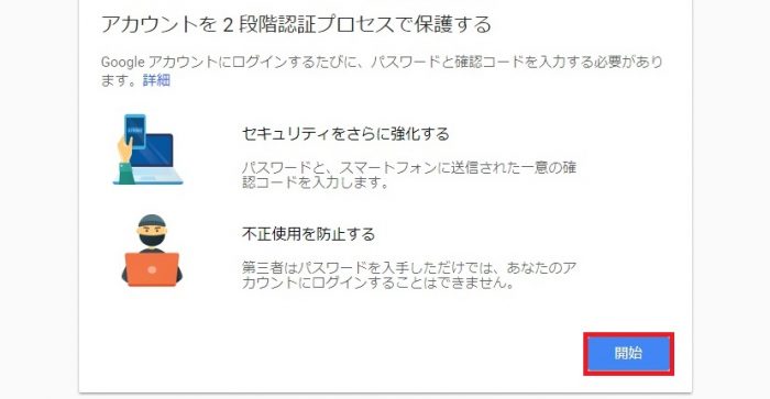 次に、PCのブラウザでグーグルのアカウントにログインしておきます。その状態で下記のリンクからグーグルの2段階認証ページにアクセスします。