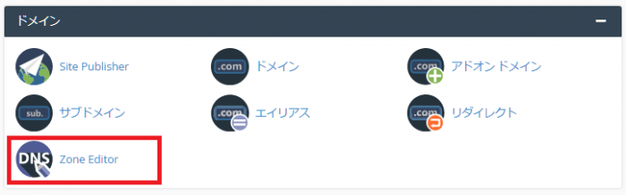 mixhostの管理画面cPanelにログインします。[ドメイン]-[Zone Editor]を選択します。