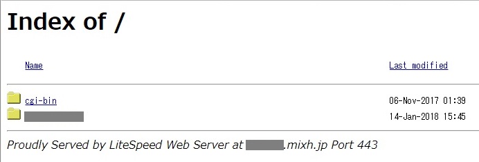 mixhostでは、初期状態でフォルダ内にindexファイルが存在しない場合、ファイルの一覧(index of)が表示される仕様となっております。