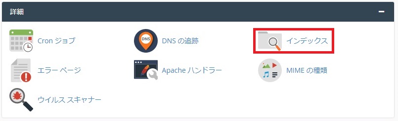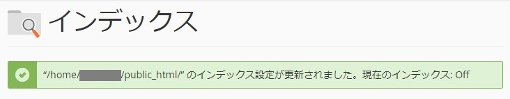 念のために、cPanel のメニュー画面に戻り、そこで「インデックス」選択します。すると下図のように設定が正しく反映されたことを確認できます。
