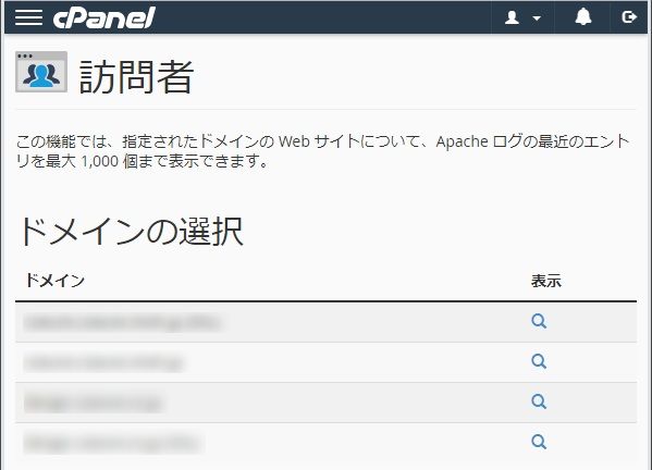 ドメイン一覧が表示されます。さきほどコピーしたURLが該当するドメインの右ある虫眼鏡のようなアイコン(表示)をクリックします。