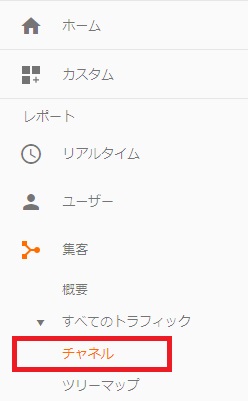 さらに、[集客]-[すべてのトラフィック]-[チャンネル]を選択し、どの経路からのアクセスかを確認しました。
