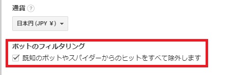 - ビューの設定で[ボットのフィルタリング]にチェックを入れる。