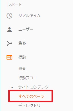 アナリティクスで[行動]-[サイトコンテンツ]-[すべてのページ]を選択し、当社サイトのどのページにアクセスがあったかを確認しました。